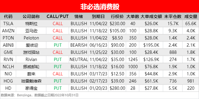 周一(10月31日),非必选消费、信息技术和金融板块相关个股出现较多活跃单,按照当日成交量排行,榜单TOP 10分别如下: