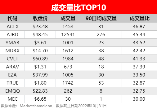 2.相对成交量比TOP10