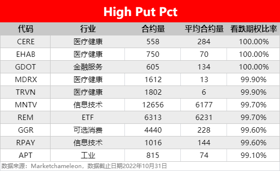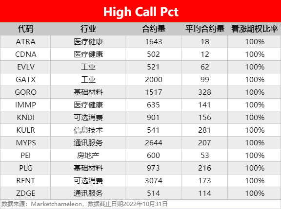 注:High Call Pct/High Put Pct是指相关期权标的当前看涨/看跌比例大小,该比值越高意味着该期权标的看涨/看跌的合约占比越高。