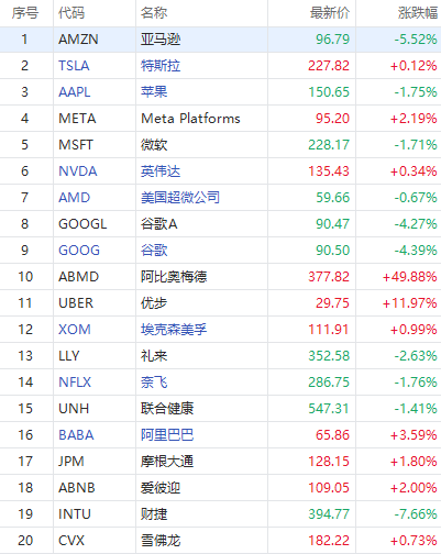 周二美股成交额冠军亚马逊收跌5.52%,成交149.2亿美元,市值跌破1万亿美元。周二以亚马逊为首的美国互联网零售商股票普遍走低。