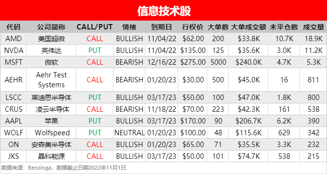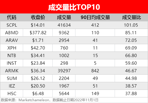 周二(11月1日),非必选消费、信息技术和医疗健康板块相关个股出现较多活跃单,按照当日成交量排行,榜单TOP 10分别如下: