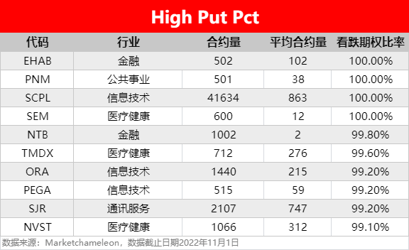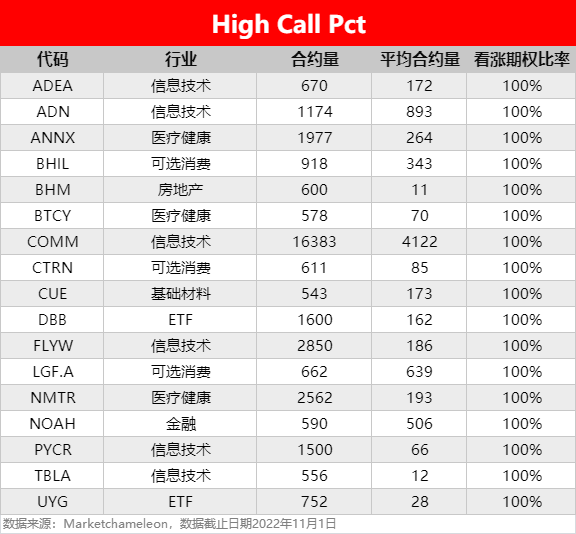 注:High Call Pct/High Put Pct是指相关期权标的当前看涨/看跌比例大小,该比值越高意味着该期权标的看涨/看跌的合约占比越高。