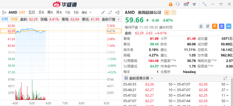 周三(11月2日)美股盘前,美国超微公司 $AMD 走高上涨超4%。