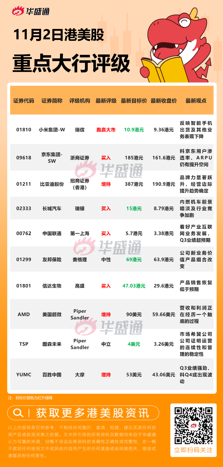 该行表示,小米 $01810.HK 第三季智能手机出货量达4,050万部,按年下跌9%,按季则增3%,根据IDC的市场占有率为13.4%。由于组合改变、库存消化及销售推广,集团的产品均价出现下降,不过毛利率保持稳定并较第二季为佳。瑞信下调小米今年至2024年经调整每股盈利预测分别18%、11%及8%,反映智能手机出货及其他业务表现下降,股份目标价由14.2港元调低至10.9港元,评级维持“跑赢大市”。