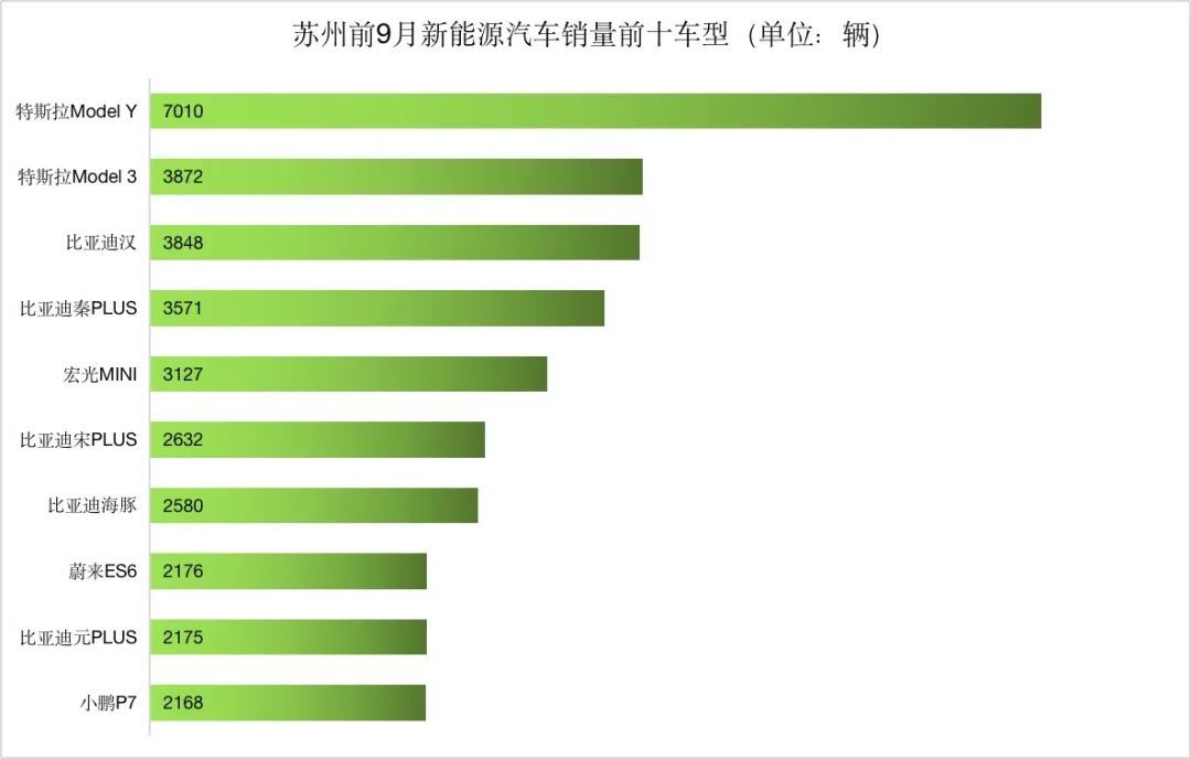 特斯拉Model Y和Model 3,以及比亚迪汉是前三季度苏州销量最高的三款新能源车。值得一提的是,这三款车都是20万级以上的新能源车,可见苏州新能源汽车的消费水平也如其市场规模一样,位居全国前列。