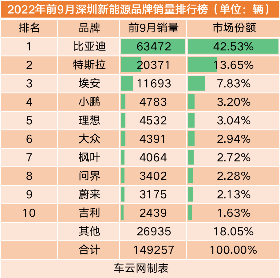 要说深圳的新能源汽车市场的最大特色,那就是比亚迪的优势太过显著了。