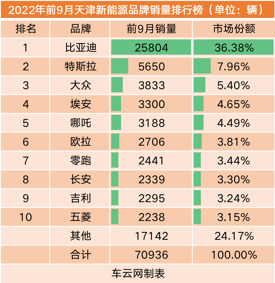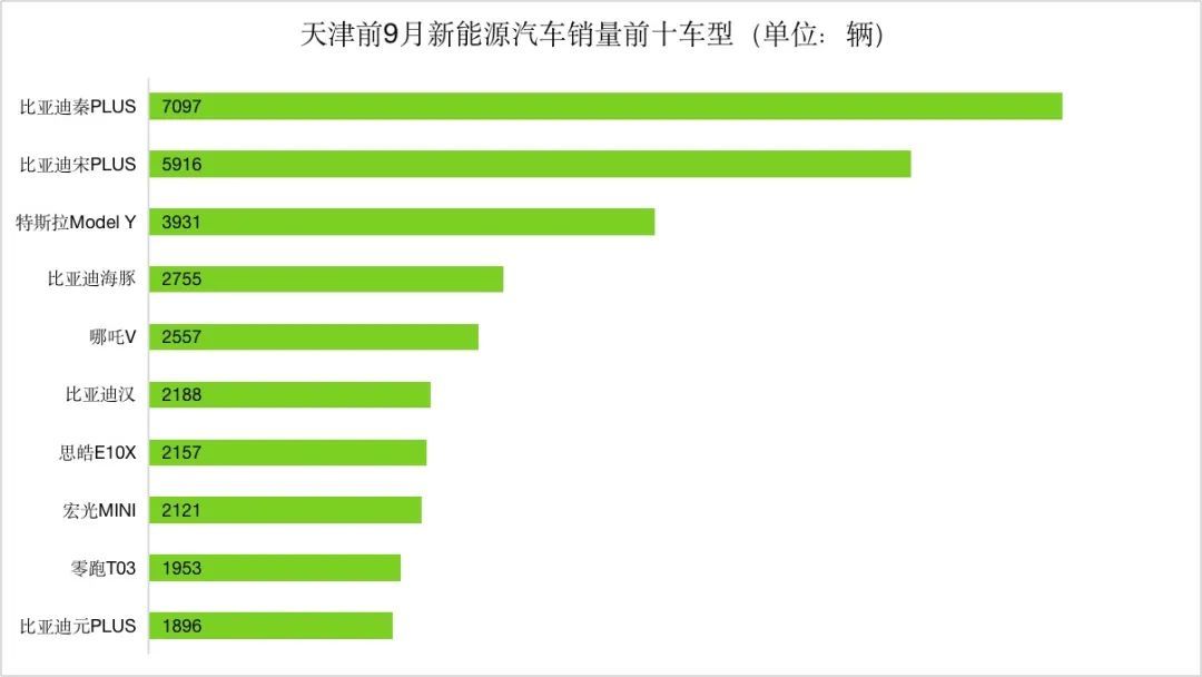 天津挤掉佛山,今年以来首次进入该榜单,成为前三季度国内新能源汽车市场的第十大城市。