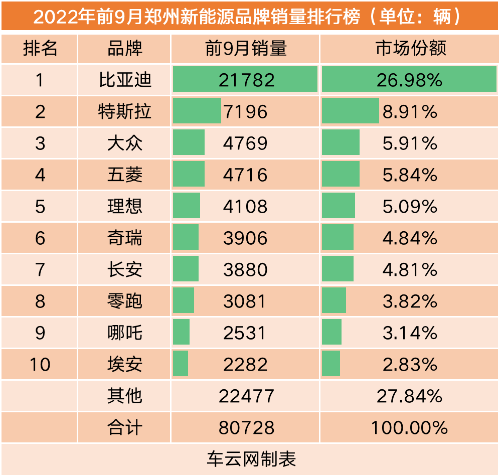 郑州在前三季度成为国内新能源汽车市场的第七大城市,比上半年提升2名。