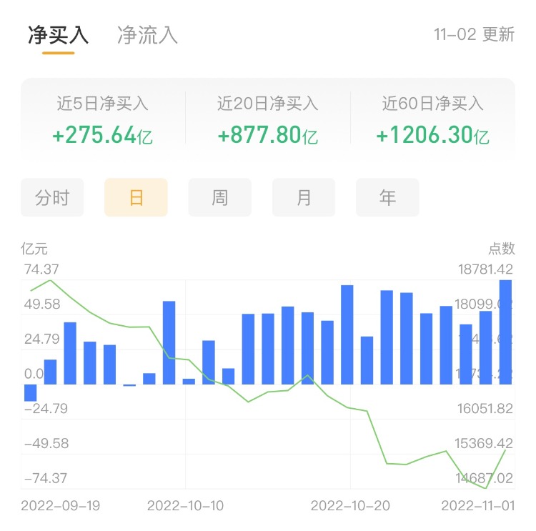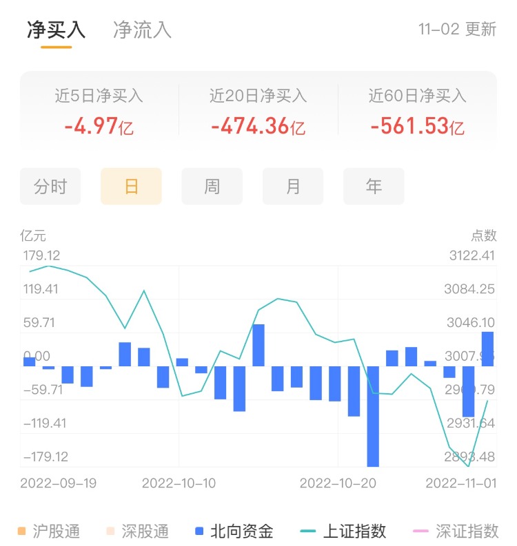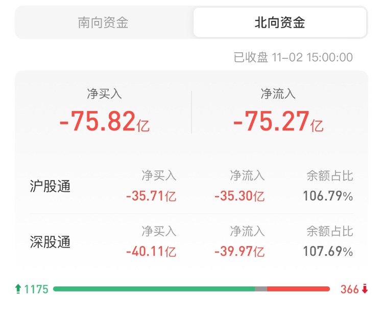 北上资金今日净卖卖出75.82亿元,沪股通净卖出35.71亿元,深股通净卖出40.11亿元。上一交易日净买入61.55亿元。