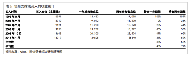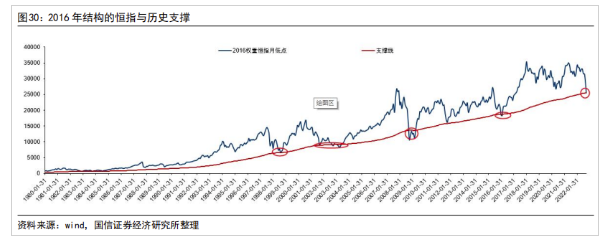 直观上,今年的港股下跌幅度较大,这很大程度上和港股在2016年之后指数大量引入新经济有关,导致了指数的分红比例从历史上的40%回落至2021年的23%。我们以历史可比恒指(即2016年成份及权重)为锚,测算在2022年10月收盘其股息率高达6.3%,已经接近2008年10月恒指最低点,对应恒指历史最高股息率6.6%的极限值。在40年的时间中,这种历史性的“大底”位置仅出现过5次,在该外置上买入持有一年收益率的中位数为38%,且正收益概率为100%。故而,我们坚定看好港股中长期走势,并重新上调港股至超配评级。