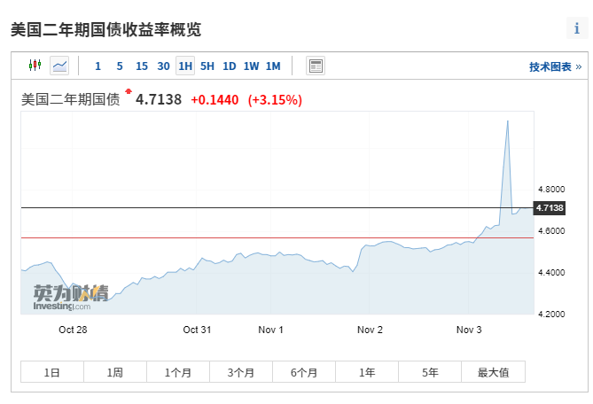周三,由于市场已经消化了美联储加息75bp这个预期,并且决议还带来另外一个对股市的“好消息”——今年12月和明年2月很可能会放缓加息速度,即不再保持75个基点的大幅加息步伐,使得美股当时快速反弹,道指、标普一度转涨。不过,在凌晨02:30美联储主席鲍威尔开启新闻发布会后,市场风云突变。鲍威尔不仅指出美联储目前还没有考虑暂停加息,甚至还强调“终端利率水平将高于此前的预期”。市场对本次加息周期的终点提高到了5%-5.25%,远超9月点阵图暗示的4.6%,三大指数尾盘大幅走低,其中受利率影响最严重的纳指跌超3%。