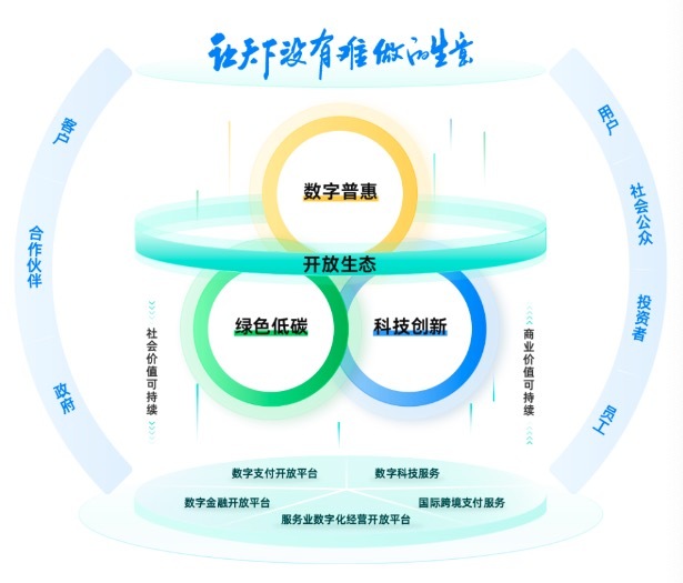 2022年6月1日,蚂蚁集团发布了2021年可持续发展报告,正式启动“数字普惠”、“绿色低碳”、“科技创新”和“开放生态”的ESG可持续发展战略。