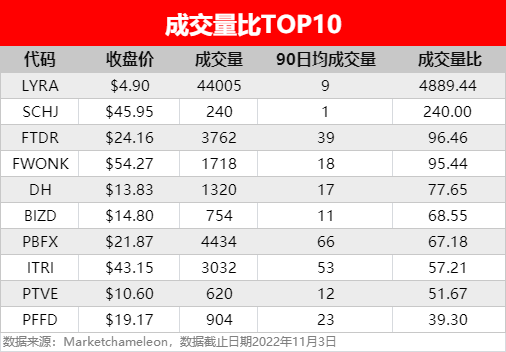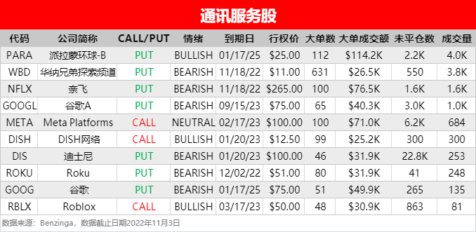 周四(11月3日),非必选消费和通讯服务板块相关个股出现较多活跃单,按照当日成交量排行,榜单TOP 10分别如下: