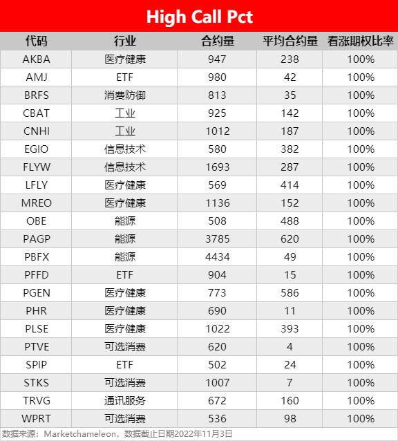 注:High Call Pct/High Put Pct是指相关期权标的当前看涨/看跌比例大小,该比值越高意味着该期权标的看涨/看跌的合约占比越高。