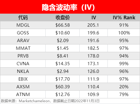 重点动态:临床阶段生物科技公司Aravive $ARAV 隐含波动率居高位,周四大幅收涨21.51%,该公司主攻治疗转移性疾病的靶向疗法。