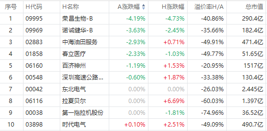 荣昌生物A股跌4.19%,港股跌4.73%;诺诚健华A股跌3.63%,港股跌2.45%;春立医疗A股跌2.33%,港股跌1.03%。