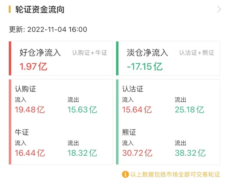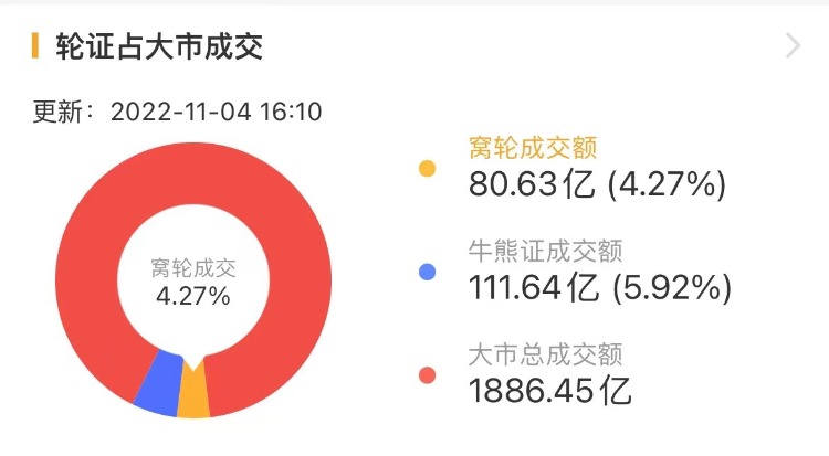 其中,窝轮总成交额为80.63亿港元,牛熊证总成交额为111.64亿港元。