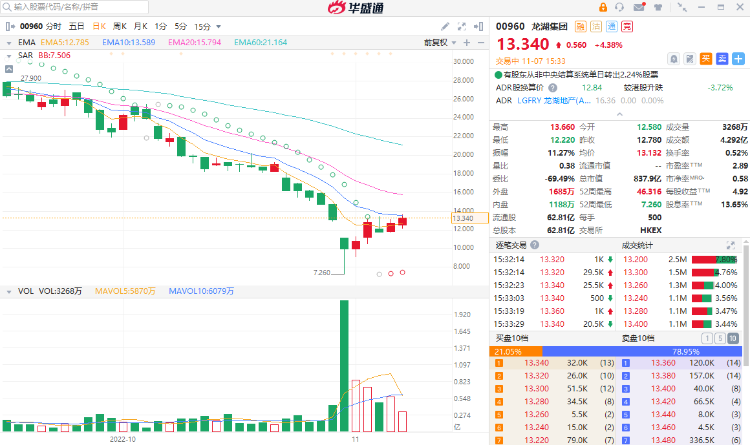 一周时间内,龙湖大股东增持股票的金额超过7000万港元,购入的优先票据本金达到2300万美元,龙湖集团则累计购买本金600万美元的优先票据。大股东及公司频繁在公开市场增持股债,显示其对龙湖财务健康和未来充满信心。伴随大股东增持动作,投资者信心回归,龙湖集团股价大幅攀升,今日一度涨超7%,现涨4.38%,报13.34港元每股。