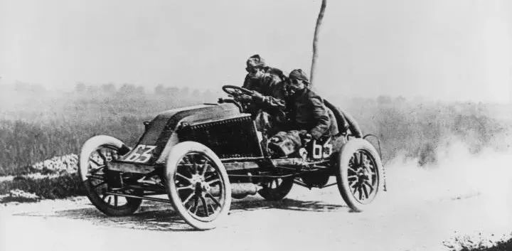 1894年,史上第一场汽车比赛“巴黎—鲁昂”赛上,几辆今天看来有些滑稽的老爷车你追我赶,很是热闹。