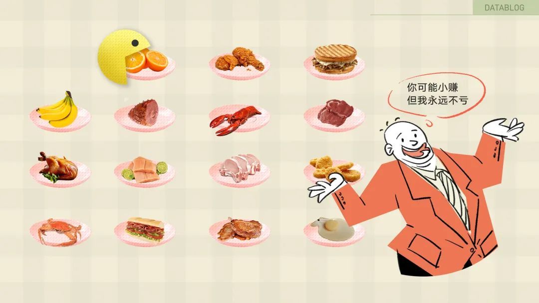 虽然也会遇到一顿能吃掉 500 元的大胃王,但这样的人,相比那些连成本价都吃不到的顾客,数量实在太少了;餐厅只需要多接待 17 个胃口一般的顾客,就能保持收支平衡。