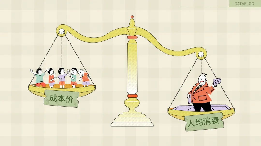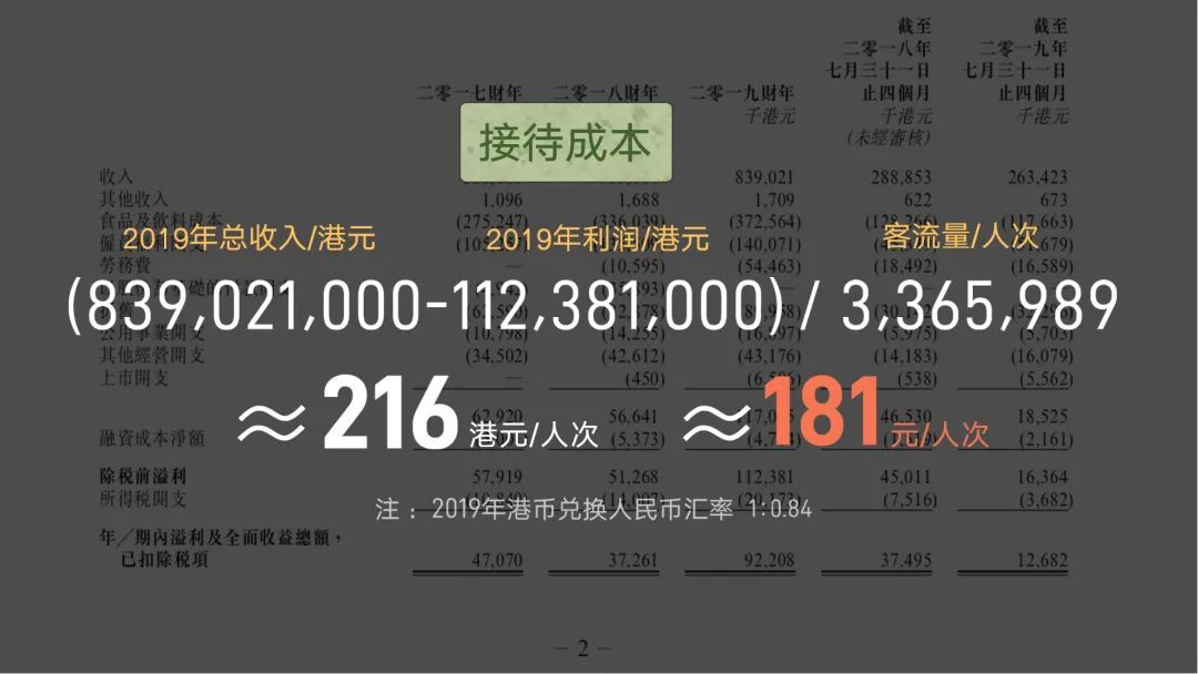 拿日式放题料理大喜屋举个例子,2019 年总收入约 7.1 亿元,其中利润近 9500 万元,拿营收减掉利润后得到的总成本,除以一年 337 万人次的客流量后,可以得知它平均接待一位客人的成本是 181 元[6]。