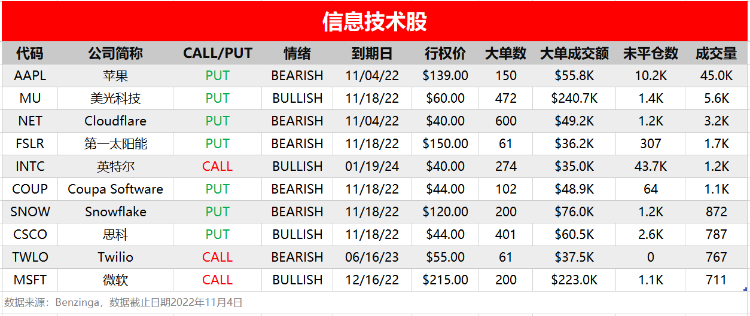 微软出现看涨期权异动大单,成交额22.3万美元。微软上周四连跌创下今年股价新低,周五止跌反弹,获看涨期权押注。