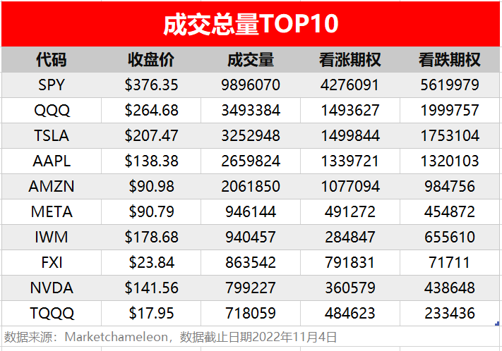1.期权成交总量TOP10
