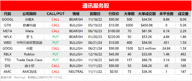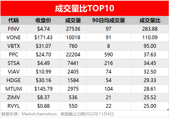 周五(11月4日),非必选消费、信息技术和通讯服务板块相关个股出现较多活跃单,按照当日成交量排行,榜单TOP 10分别如下: