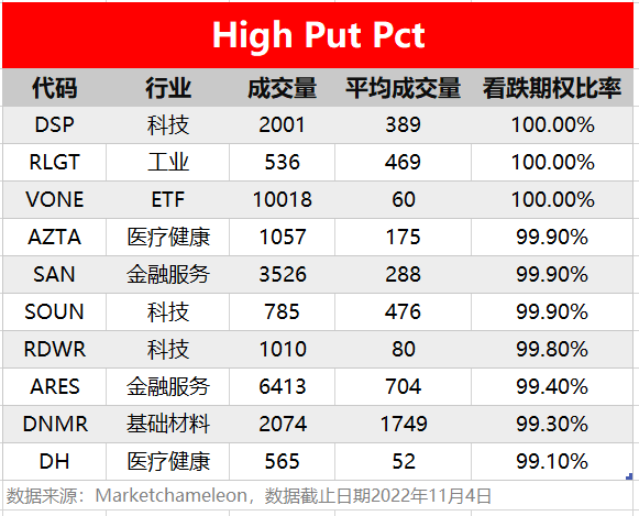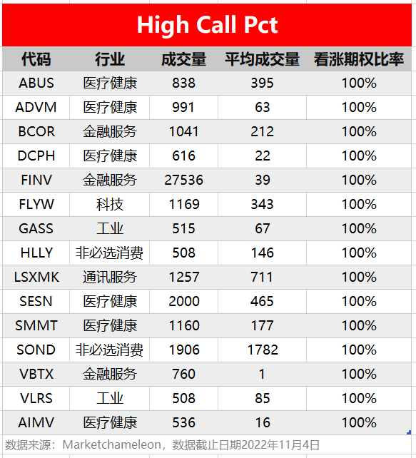 注:High Call Pct/High Put Pct是指相关期权标的当前看涨/看跌比例大小,该比值越高意味着该期权标的看涨/看跌的合约占比越高。