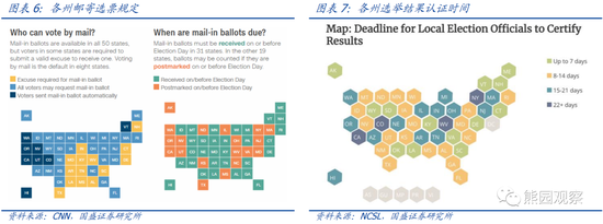 2、选举结果何时可确定?大选第二天(11/9)可获知初步计票结果,但由于有邮寄投票和潜在的决选,可能要到12月中旬才能确定最终结果。需重点关注的是,参议院摇摆州佐治亚州的决选时间是12月6日,其结果将很大程度上决定参议院归属。