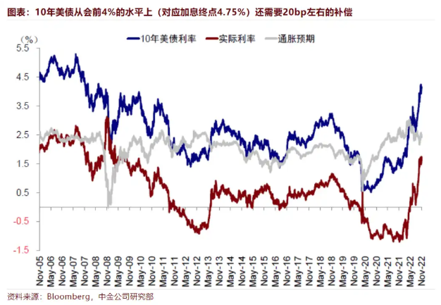 因此综合来看,不论是货币政策还是通胀的拐点,都可能至少要到12月甚至更晚,进而使得美债利率见顶和向下拐点的时点被推后,这也使得市场的「尴尬时间」进一步被延长。