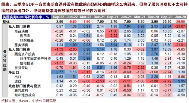 美股盈利的下调也反映了整体美国经济逐步趋缓的客观现实。最近公布的10月ISM制造业和非制造业PMI都明显回落,三季度GDP一方面表明衰退并没有像此前市场担心的那样这么快到来,但除了服务消费和不太可持续的能源出口外,也说明整体增长放缓的趋势已经较为明显。