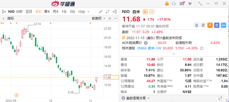 中概股美股盘前走高,雾芯科技涨超9%,小鹏汽车涨5%,哔哩哔哩涨4%,理想汽车、爱奇艺涨超3%,蔚来汽车涨近3%(蔚来将于本周公布财报)。次新股大健云仓涨超7%。
