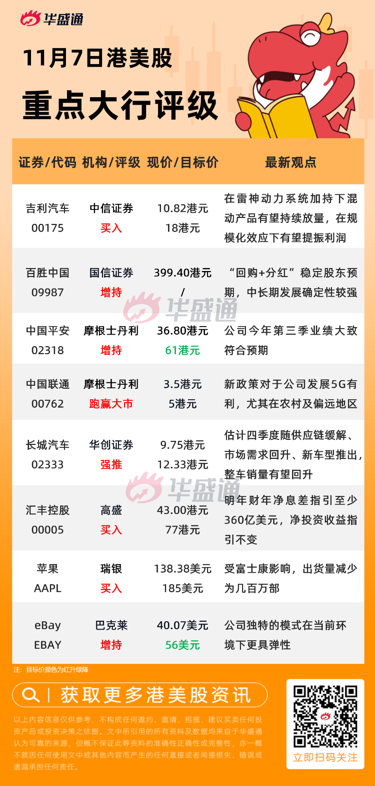 瑞银发表报告指出,因富士康郑州工厂产能大幅降低,苹果确认iPhone产量将显著减少。该行此前预计,第四季度14 Pro和14 Pro Max产量约为4100万部,其中受影响的数量为几百万部。瑞银认为,目前市场对苹果2023财年的营收和每股收益预期过于乐观,分别为约4070亿美元和6.25美元,而该行预期分别为4040亿美元和6.11美元,并预计会进一步下调。瑞银对苹果的目标价为185美元,评级买入。
