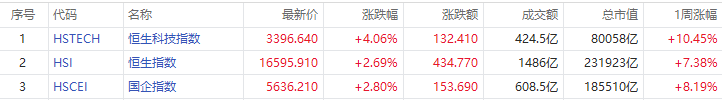 近期港股情绪大为改观,一周3根大阳线直接改变信仰。具体看,恒生指数单周涨幅8.73%,创2011年10月底以来最大单周涨幅;恒生科技指数单周涨幅15.63%,创有记录以来最大单周涨幅。