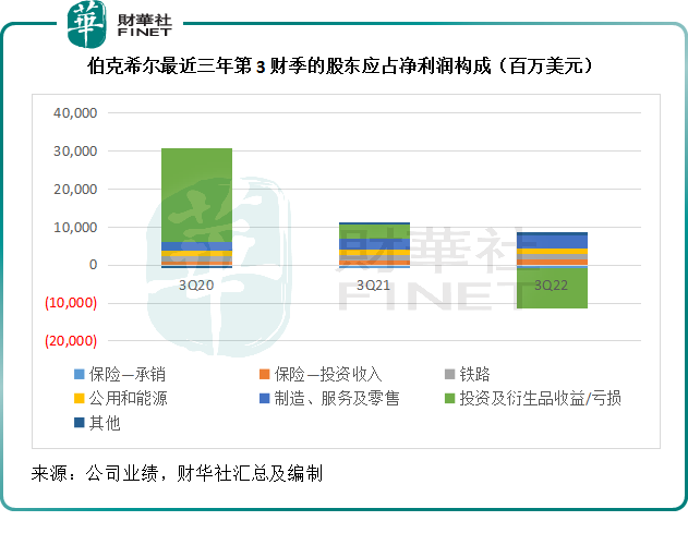 2022年第3季,伯克希尔转盈为亏,由去年同期录得股东应占净利润103.44亿美元,变为产生净亏损26.88亿美元。