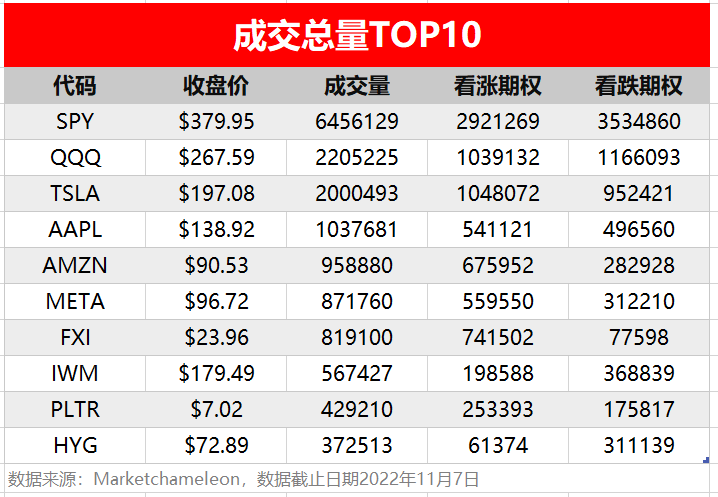1.期权成交总量TOP10