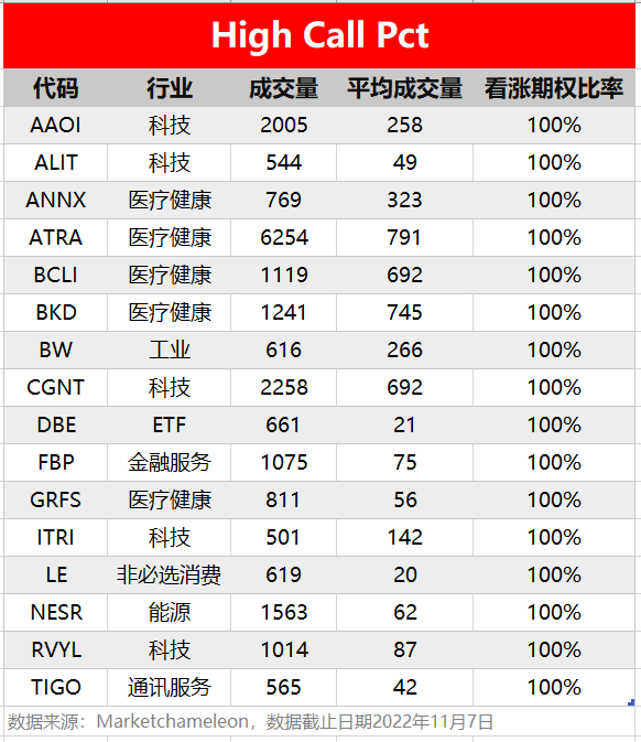 注:High Call Pct/High Put Pct是指相关期权标的当前看涨/看跌比例大小,该比值越高意味着该期权标的看涨/看跌的合约占比越高。