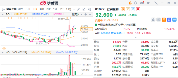 君实生物(01877.HK)也因其新冠小分子口服药“VV116”获批预期提升而受到市场追捧,近1个月走出了接近翻倍的行情。
