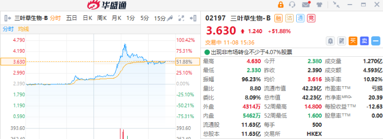 11月8日,港股新冠概念股近期持续活跃,港股三叶草生物-B今日盘中一度飙涨90%,现涨47%;截至发稿,山东新华制药现涨17%,君实生物、复星医药、康希诺生物等较低位也有大幅反弹。