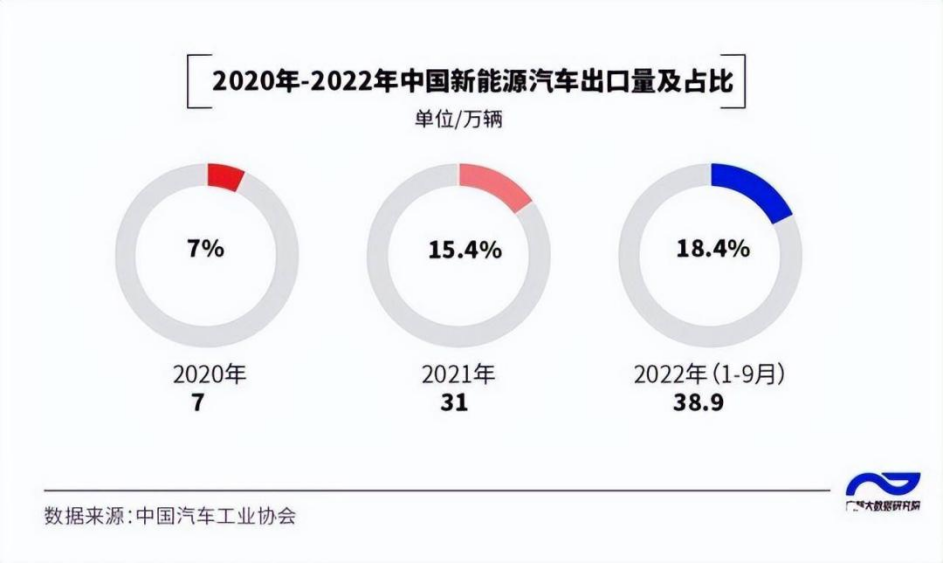 新能源汽车是中国汽车出口增长的核心增长动能。2020年出口新能源汽车7万辆;2021年31万辆;今年前9个月,38.9万辆,占比增长至18.4%。