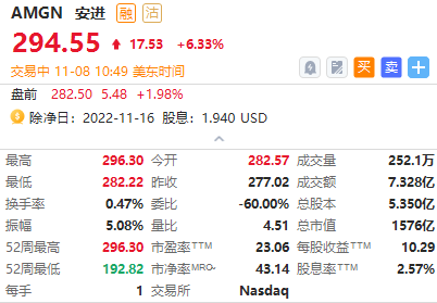 安进涨超6%,该公司公布Olpasiran的最新2期数据,可显著降低胆固醇水平。