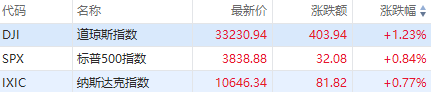 华盛资讯11月8日消息,美股三大指数盘中集体拉升,截至发稿,道琼斯指数涨超1%,标普500指数涨0.84%,纳斯达克指数涨0.77%。ETF方面,2倍做空天然气-ProShares $KOLD 涨超8%,3倍做多半导体 $SOXL 涨超7%。