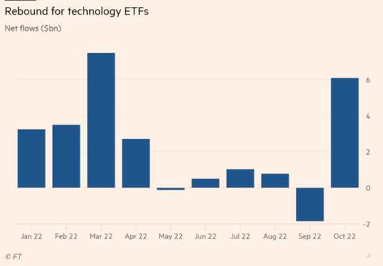 交易所交易基金(ETF)买家在10月份转向买入ETF,这表明一些投资者认为,在经历了12个月的惨痛损失后,全球股票和债券市场可能正在接近最低点。