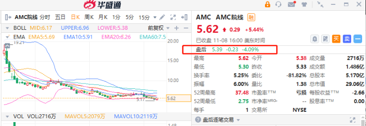 AMC院线(AMC.US)11月8日盘后公布了2022年第三季度业绩,自1月以来,AMC的股价已下跌近80%,并在周一创下52周低点。截至发稿,该股盘后下跌4.98%,报5.34美元。