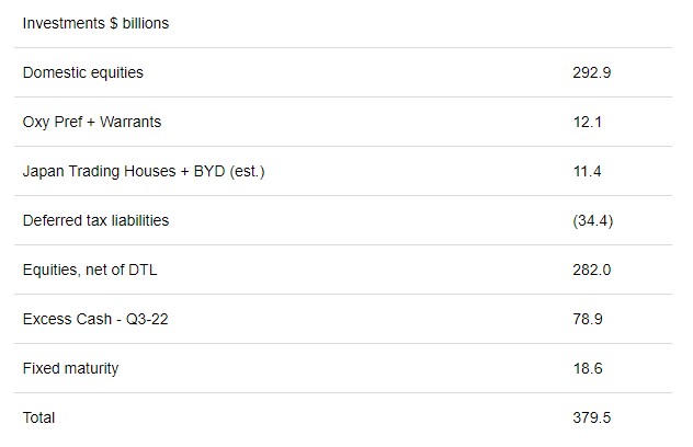 此外,在保守估计下,伯克希尔哈撒韦的承销业务是盈亏平衡的(尽管这一业务在大多数年份都产生了显著的累积收益的承保利润)。第三季度,伯克希尔哈撒韦保险承保收入为负10亿美元,低于一年前的负8亿美元。飓风伊恩于9月下旬袭击,造成超过500亿美元的损失,在保险业务盈利能力下降方面发挥了作用。然而,这被保险组合中较强劲的投资收益所抵消,因为这些收益同比增长2.5亿美元。利率上升帮助伯克希尔哈撒韦从投入国债和公司债券等固定收益投资的资金中获得更高的利息收入,这解释了为什么保险浮存金在今年第三季度(同比情况下)产生了更高的利润。