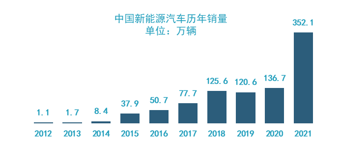随着国家持续推动新能源,电池性能提升成本下降,充电基础设施完备,特斯拉等新兴品牌拉动,新能源汽车逐步被消费者接受。特别是2020年之后,新能源汽车尽管进入后补贴时代,但是私人消费大兴。2021年中国新能源汽车销量创出352万辆新高。