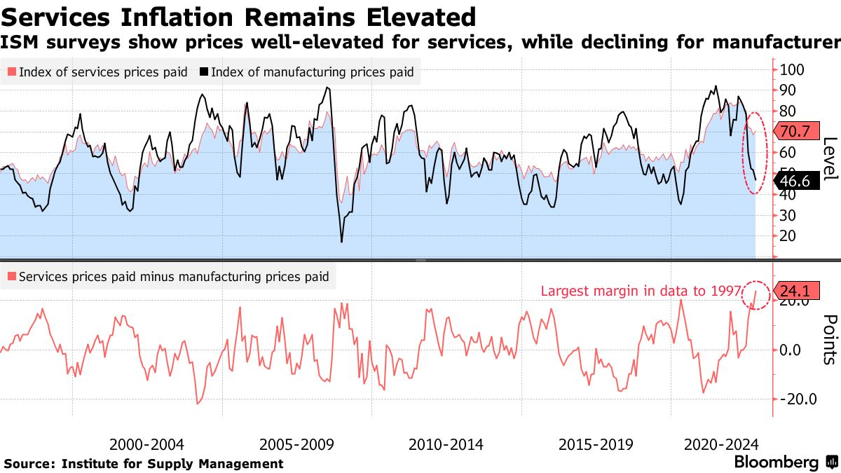 通胀正在降温的领域是汽车和服装等商品,这反映了供应链的改善和消费模式向服务的转变。但这种放缓并没有抵消服务业带来的价格压力。
