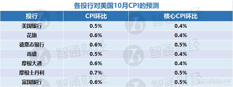 美国10月通胀数据将于北京时间11月10日(周四)21:30公布。经济学家预期美国10月CPI环比增长0.6%,同比增长7.9%;核心CPI环比增长0.5%,同比增长6.5%。10月份数据可能显示,美国通胀仅略有放缓,高于预期的数据可能会打破人们对美联储放缓加息步伐的预期。