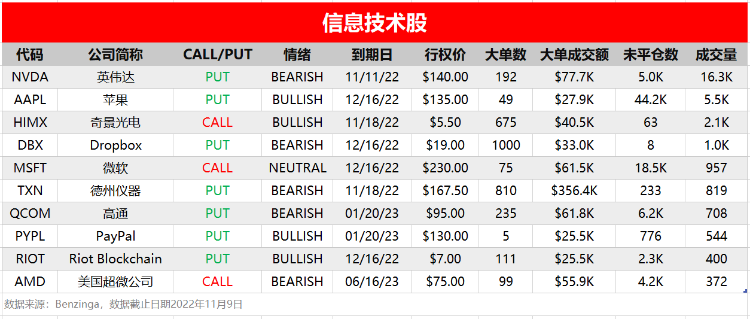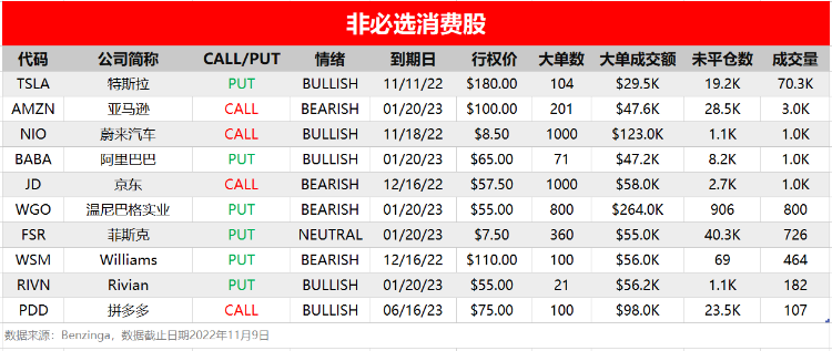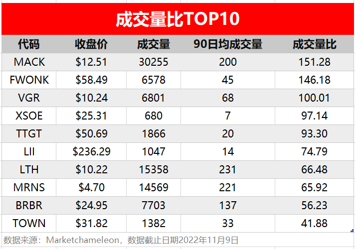 周三(11月9日),非必选消费、信息技术和通讯服务板块相关个股出现较多活跃单,按照当日成交量排行,榜单TOP 10分别如下: